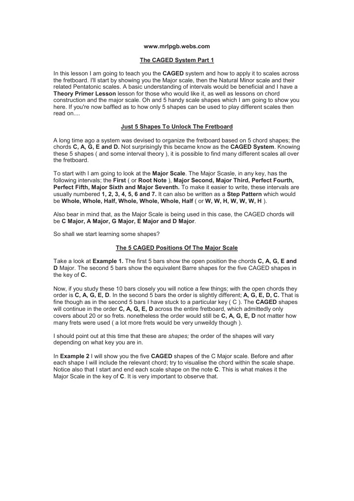Be learned much more quickly if the CAGED system is understood. Free CAGED System - a Guide for Guitarists from DS Music. Each of the 5 shapes will produce a full A-Minor scale when you play it from root note till any.